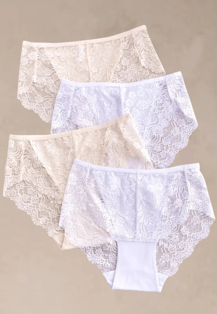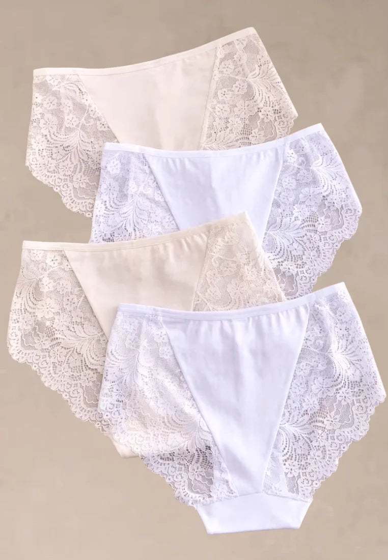 Zestaw 4 szt. figi majtki damskie koronkowe bawełniane w bieli i beżach