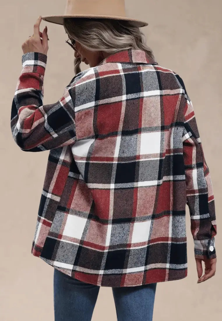 Modna koszula flanelowa oversize w czerwoną kratę to niezbędny element jesiennej garderoby. Wykonana z miękkiego, przyjemnego w dotyku materiału, gwarantuje ciepło i komfort w chłodniejsze dni. Klasyczny kraciasty wzór w odcieniach czerwieni, czerni i beżu nadaje jej ponadczasowego charakteru. Luźny krój typu oversize zapewnia swobodę ruchów i stylowy, casualowy wygląd. Idealna do jeansów, legginsów lub jako narzutka na T-shirt.
