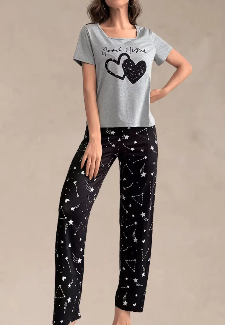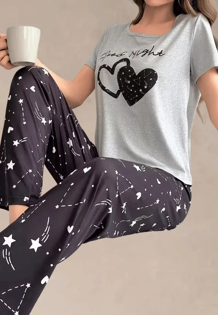 Szary komplet piżamowy damski z krótkim rękawem i długimi spodniami