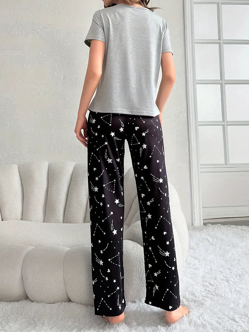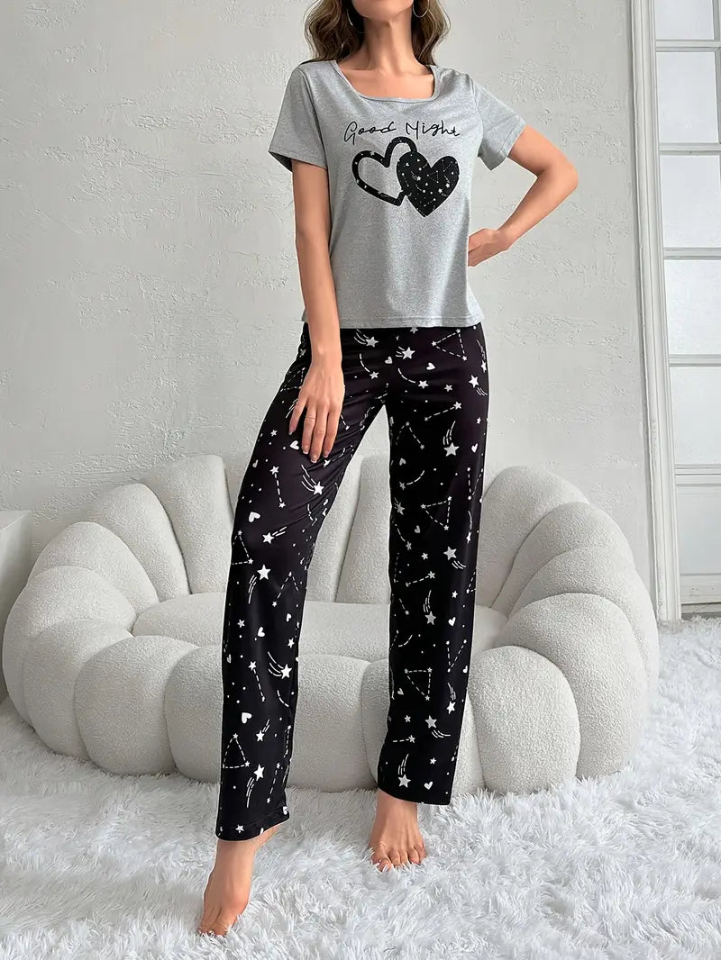 Piżama damska w kratę w odcieniach różu z krótkim rękawem