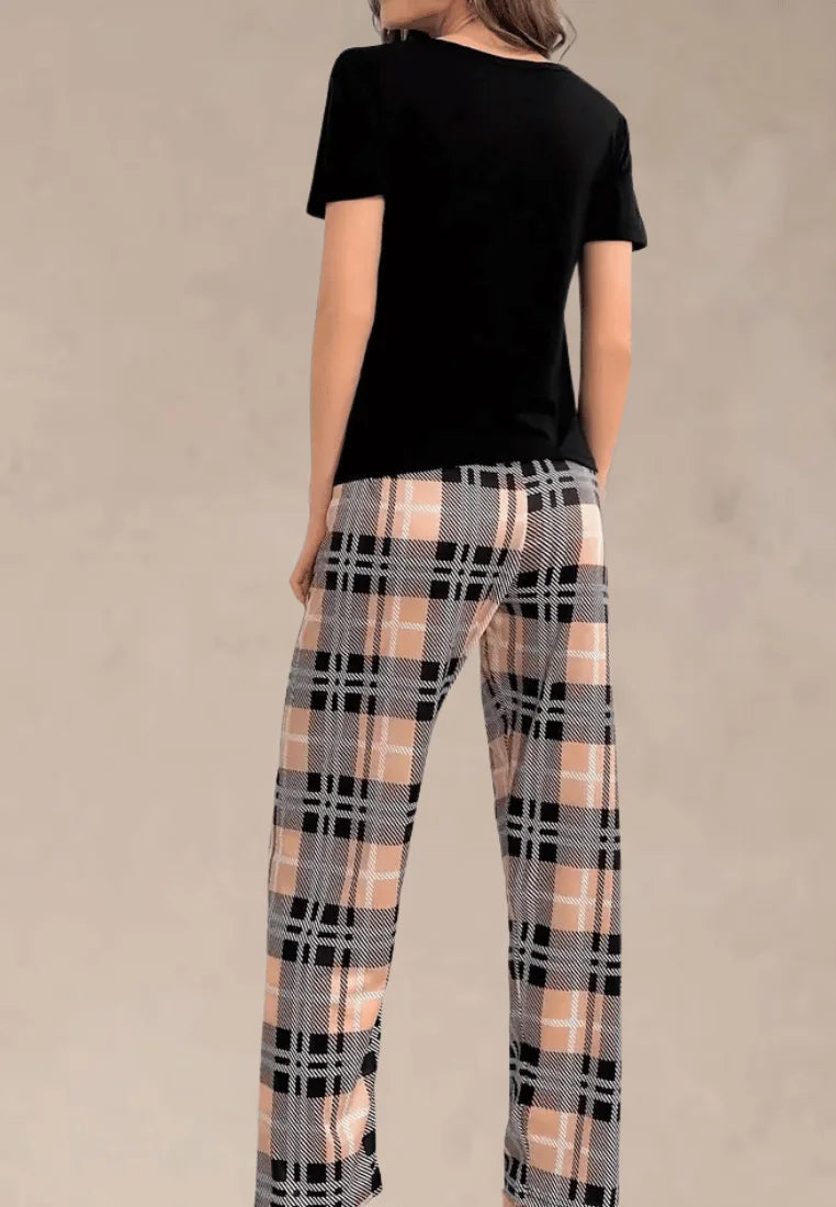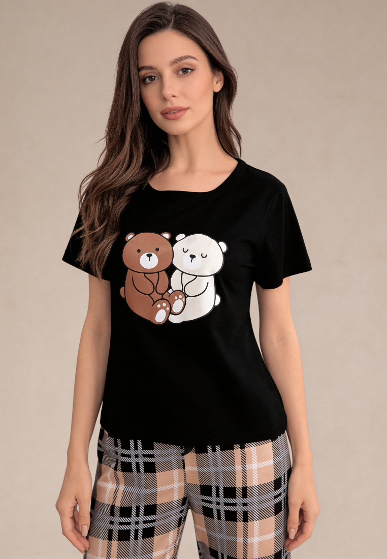 Czarny komplet piżamowy damski z krótkim rękawem i długimi spodniami