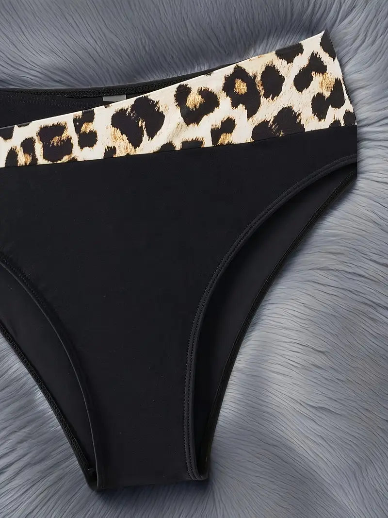Strój Kąpielowy Dwuczęściowy czarny w panterkę