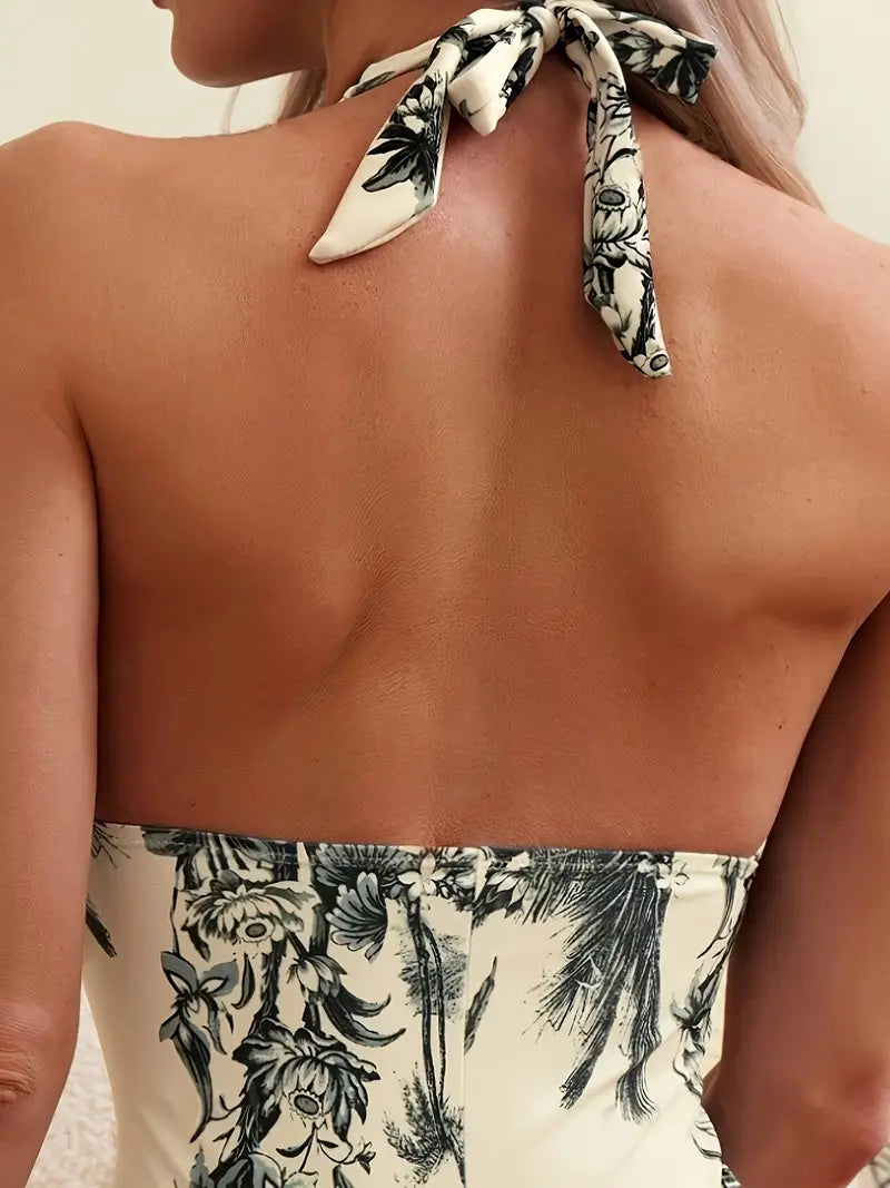 Strój Kąpielowy Jednoczęściowy w roślinne wzory