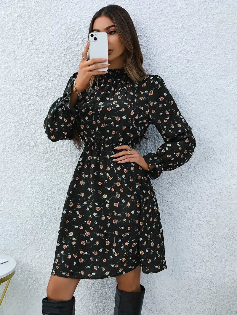 Sukienka damska w kwiaty z długim rękawem