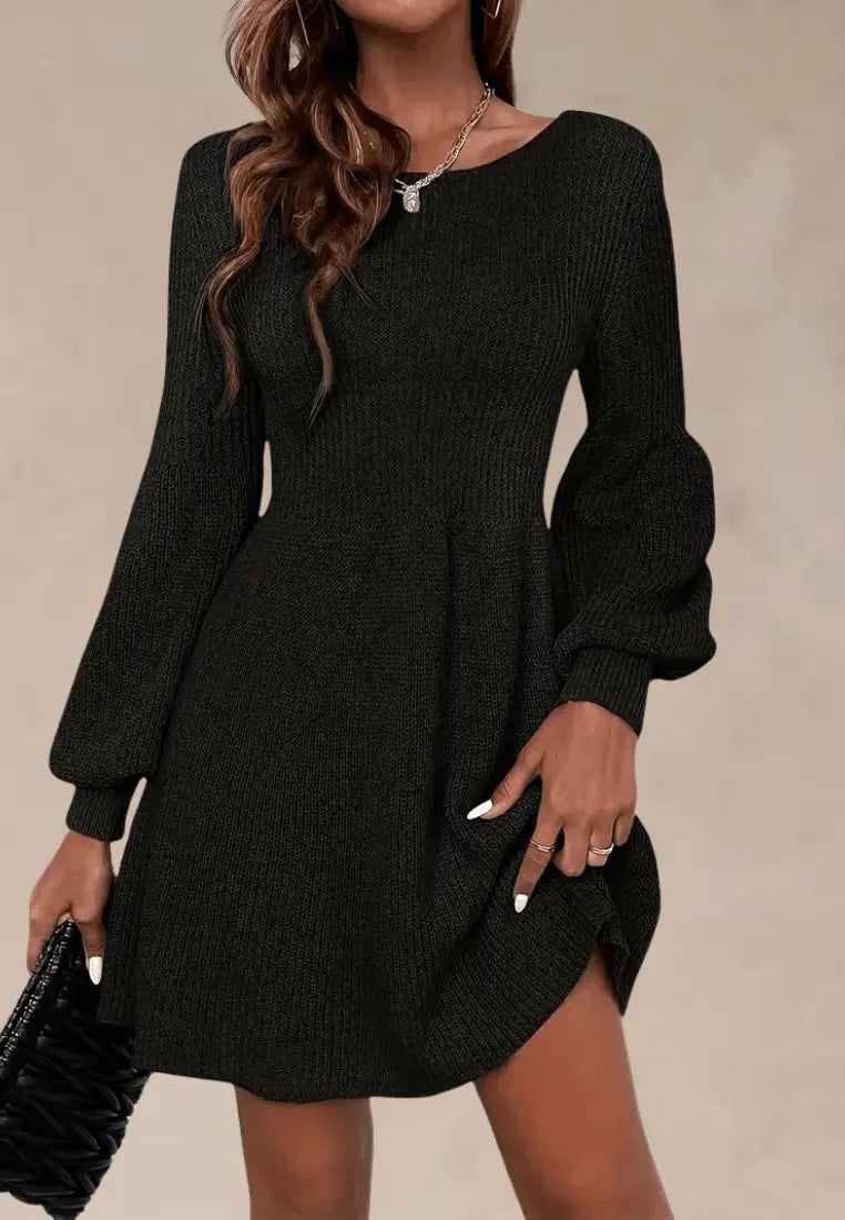 Ta sukienka dzianinowa czarna z rozkloszowanym dołem i bufiastymi rękawami to połączenie klasy, wygody i nowoczesnego stylu.