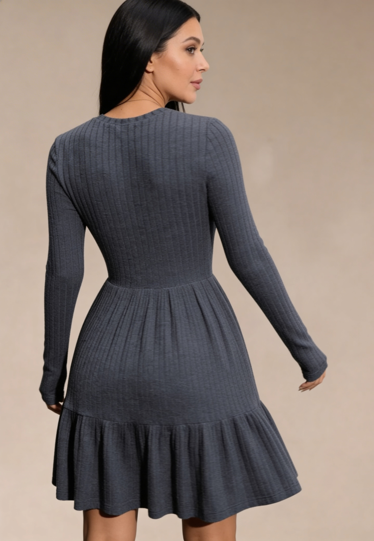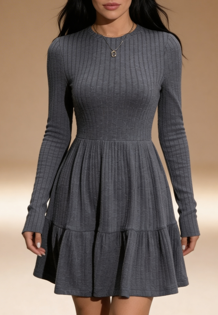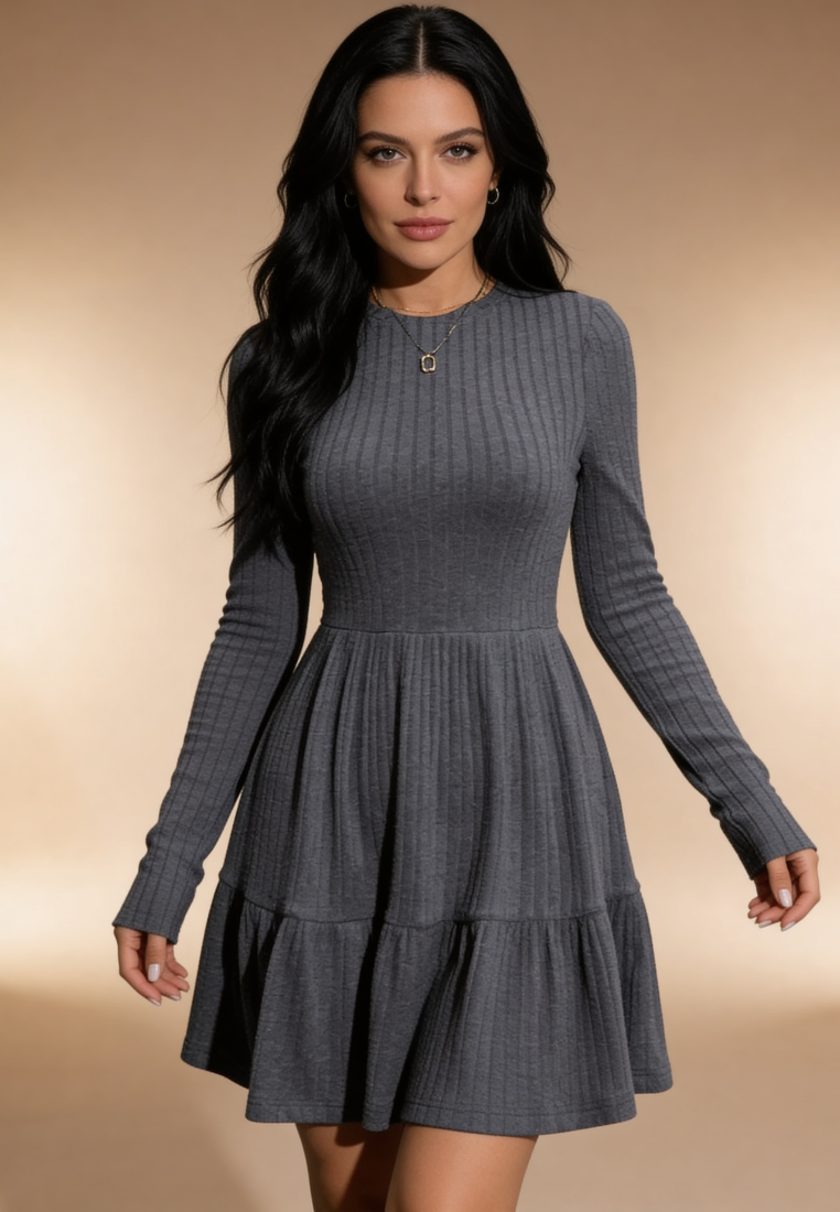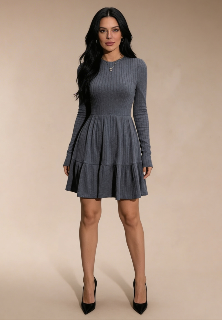 Grafitowa sukienka dzianinowa z rozkloszowanym dołem i rękawem
