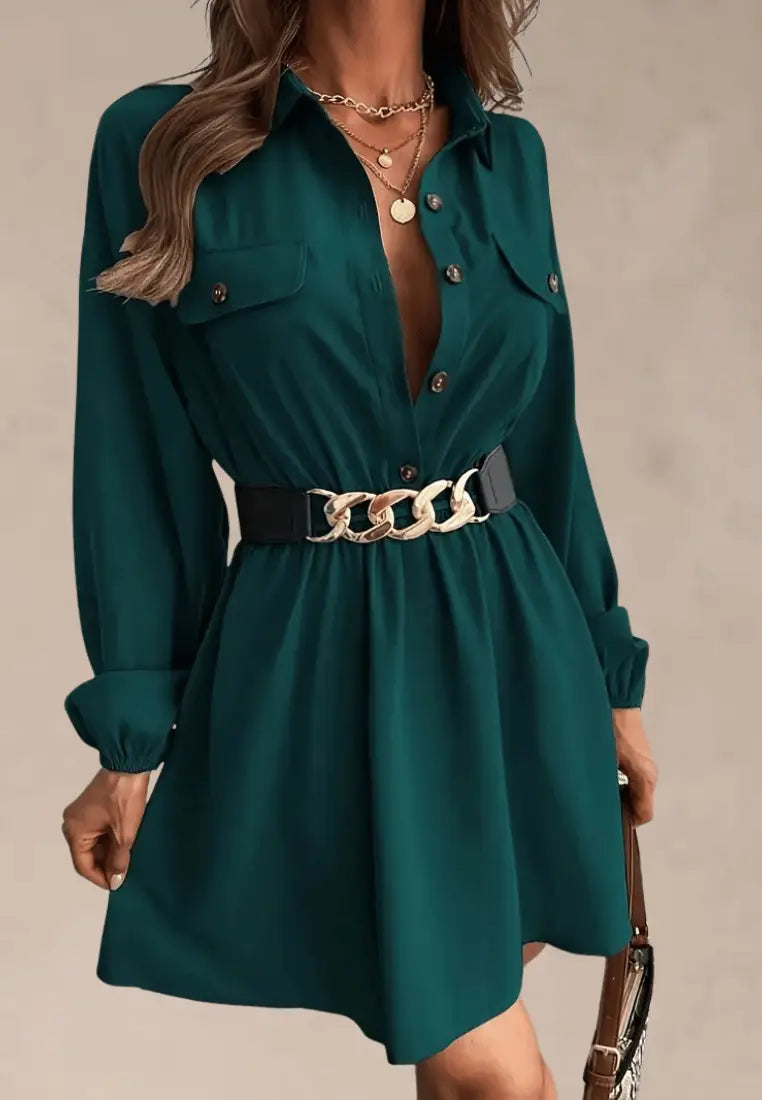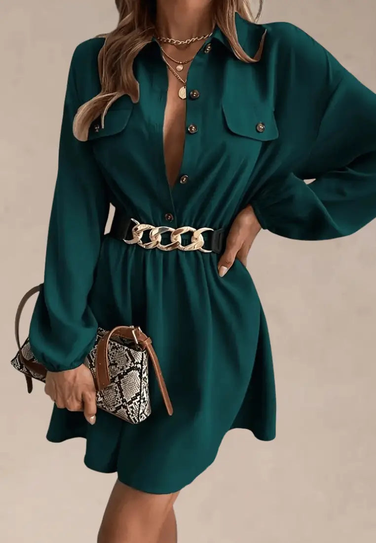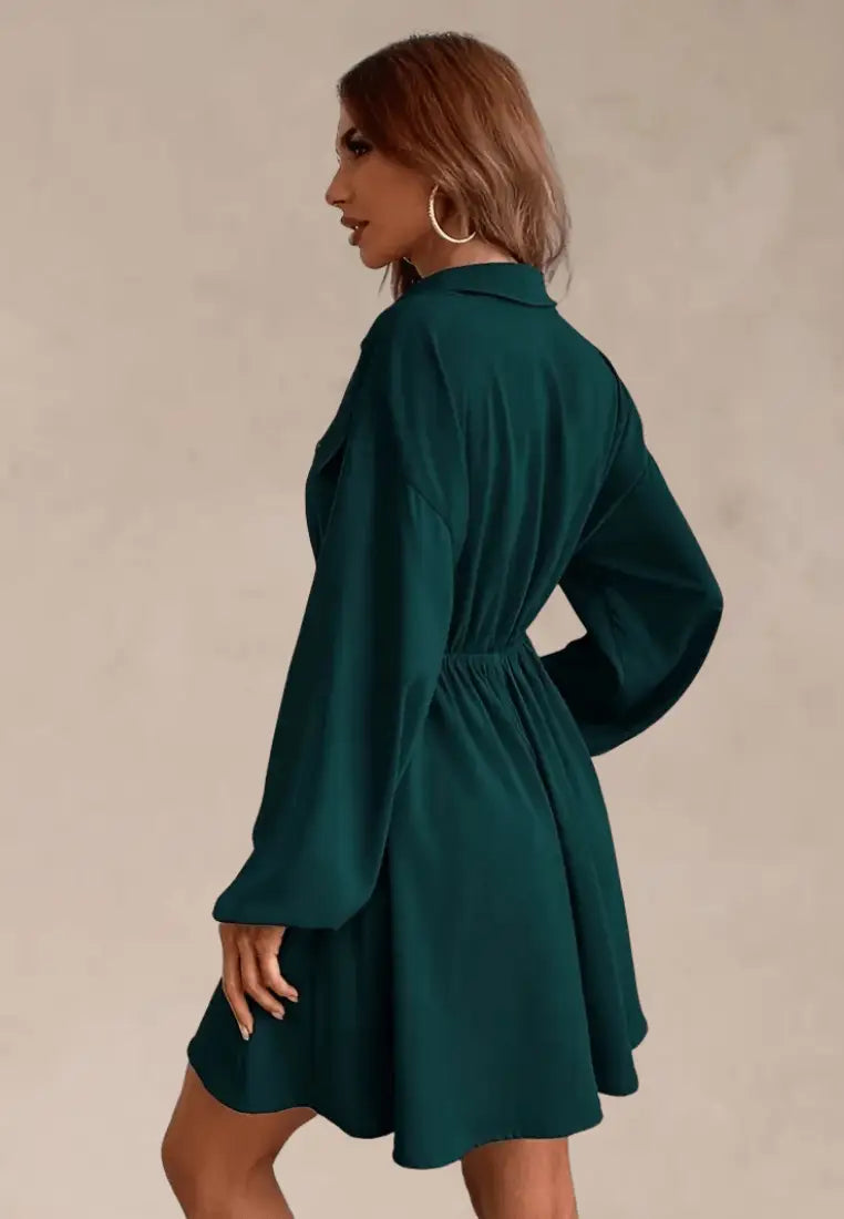 Postaw na klasykę w nowoczesnym wydaniu z sukienką koszulową z wiązaniem w talii w kolorze butelkowej zieleni. To uniwersalna propozycja, która sprawdzi się zarówno w codziennych stylizacjach, jak i bardziej eleganckich okazjach. Jej koszulowy fason oraz intensywny, głęboki kolor dodają charakteru i klasy każdej sylwetce.