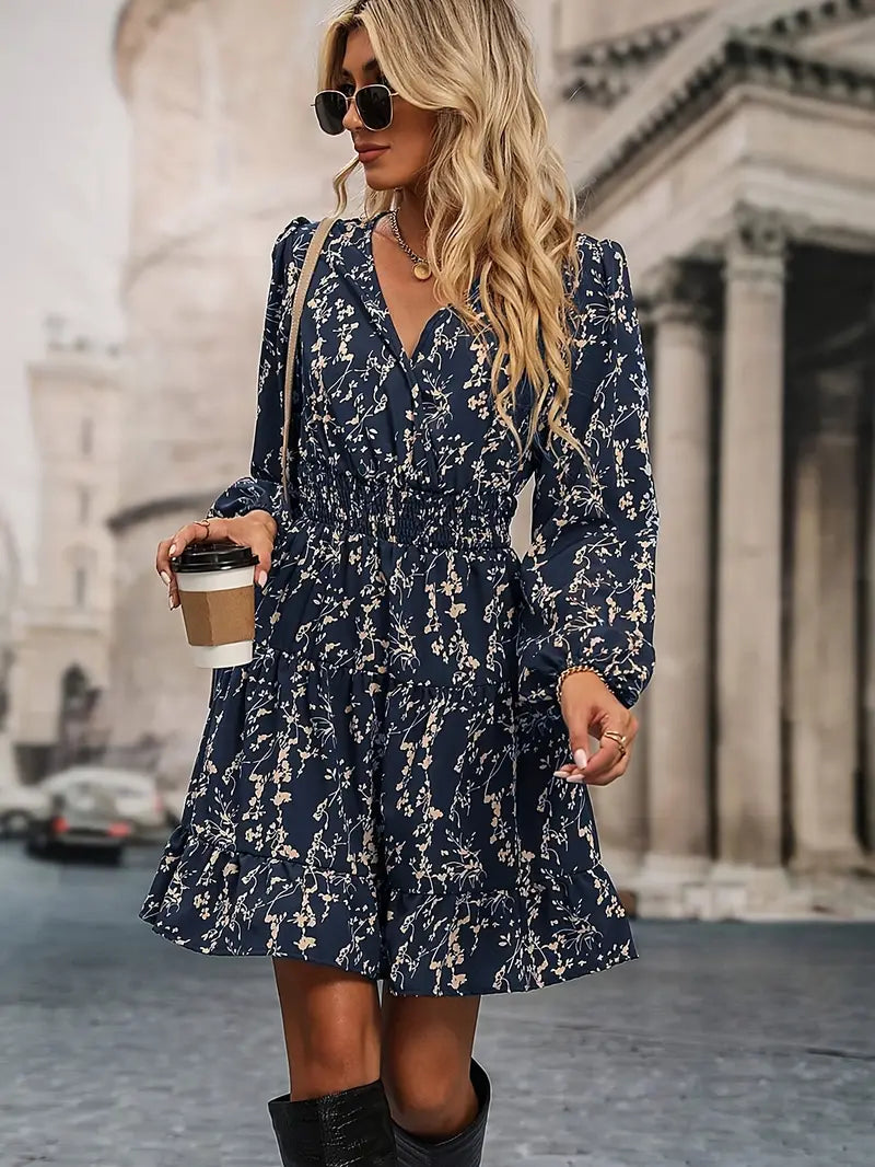 Długie rękawy zakończone gumką oraz zwiewny krój z subtelną falbaną przy dole sprawiają, że sukienka jest wygodna i niezwykle stylowa. Dekolt w kształcie litery V wysmukla szyję i dodaje zmysłowości, a długość przed kolano czyni ją idealną na co dzień i na wyjątkowe wyjścia.