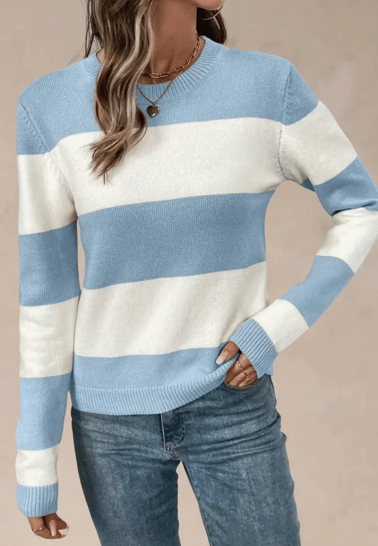 Błękitno-biały sweter damski w poziome pasy