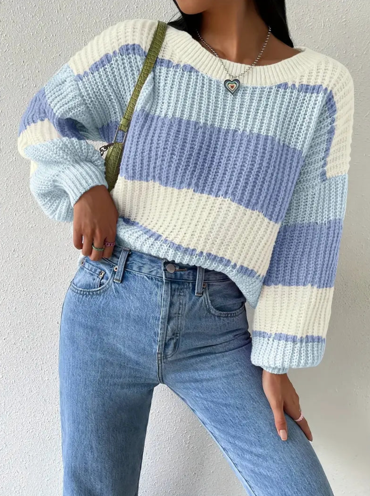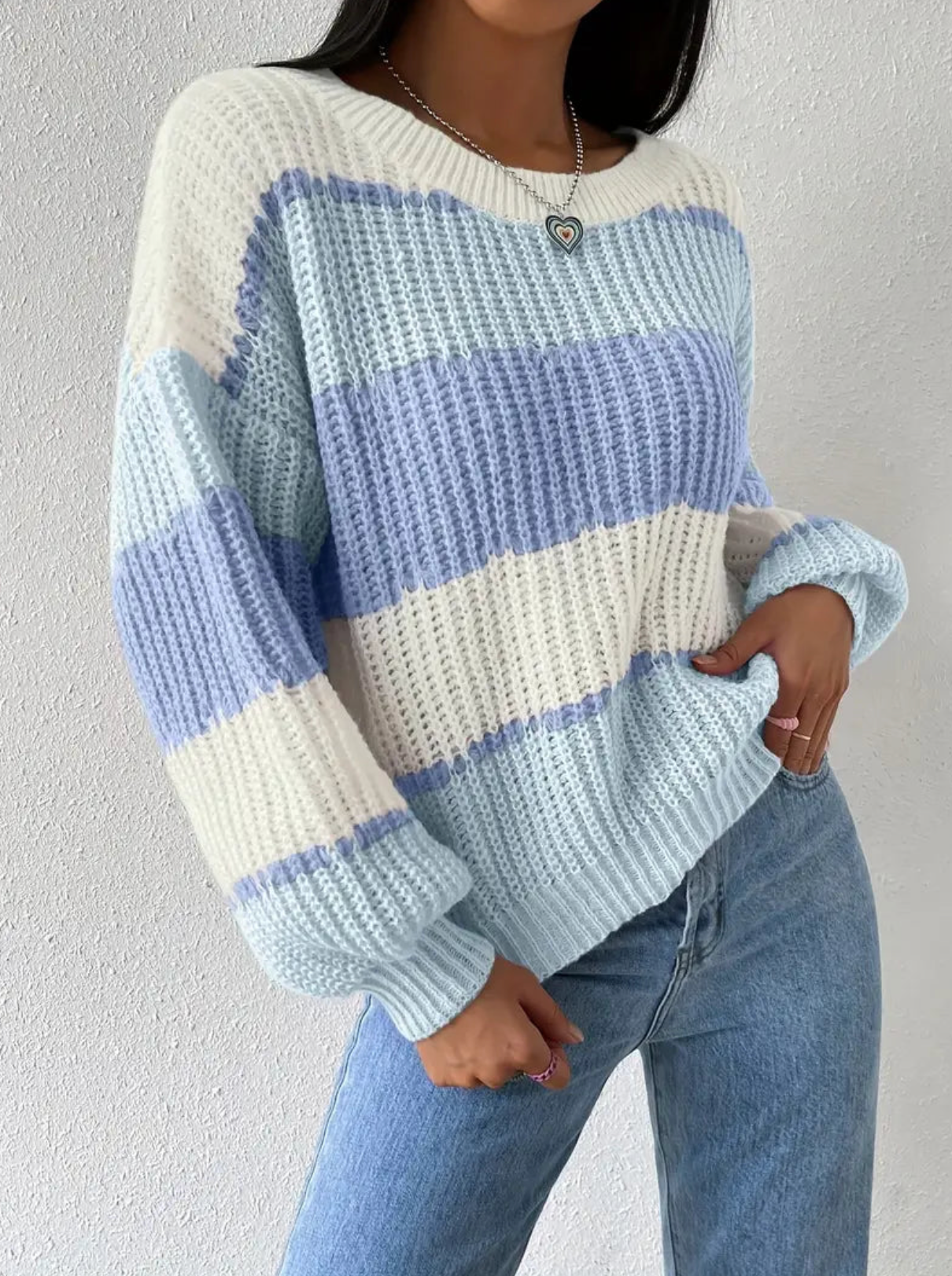 Sweter w szerokie pasy w odcieniach białego z niebieskim Niebieski