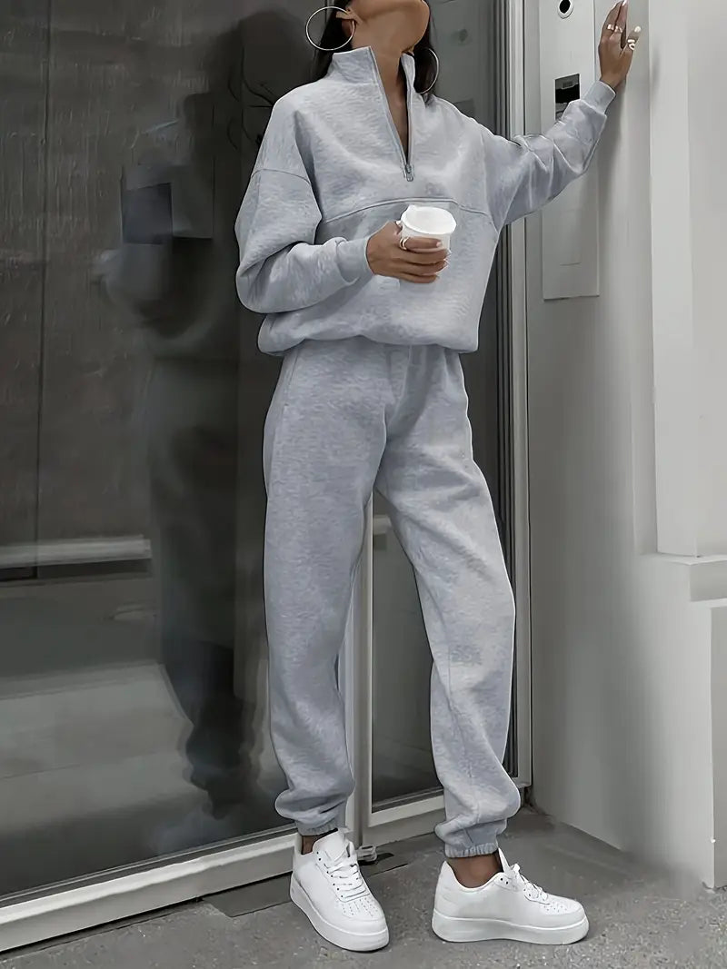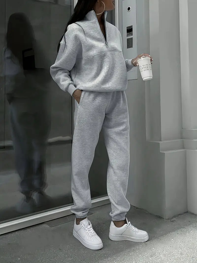 Postaw na wygodę w nowoczesnym wydaniu z szarym dresem damskim z półgolfem i zamkiem. Ten stylowy komplet łączy w sobie komfort i minimalistyczny design, sprawiając, że świetnie sprawdzi się zarówno w codziennym użytkowaniu, jak i podczas aktywnego dnia.