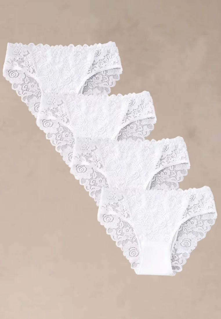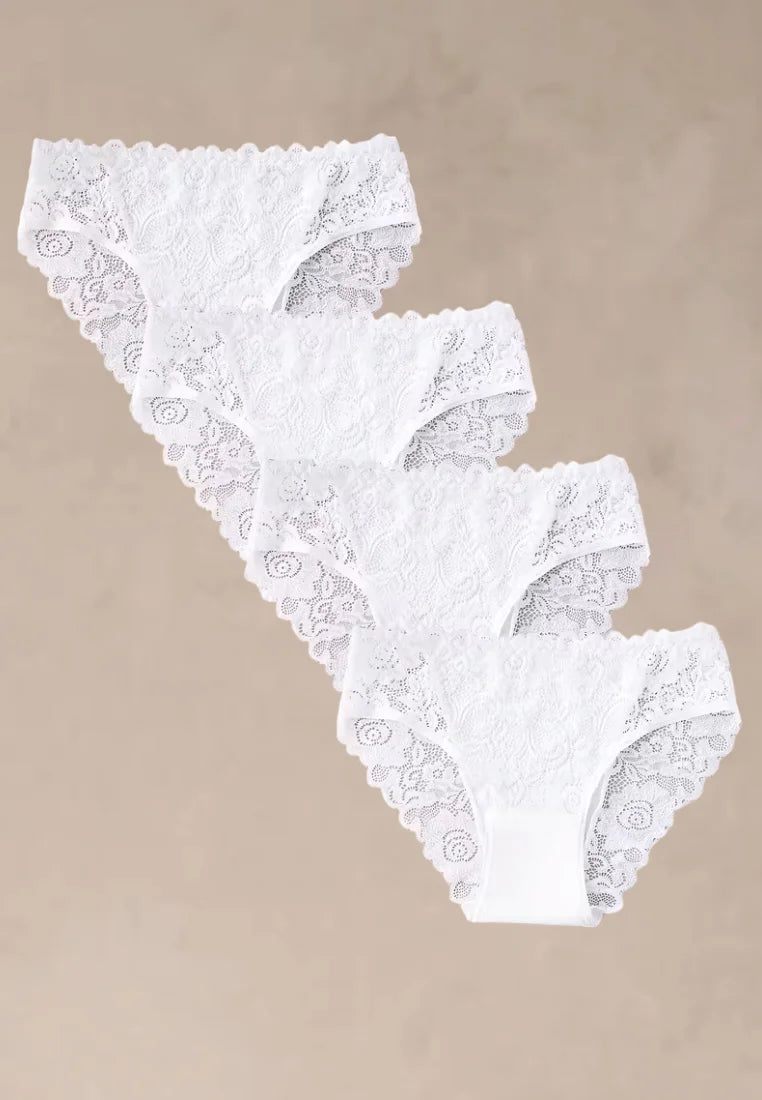 Odkryj rozwiązanie elegancji i zestawu 4 białych koronkowych fig kontrolnych w 95% z miękkiej, oddychającej bawełny. Delikatna koronka o wzorzec pasuje do charakteru, a konstrukcja dostosowana do postaci.