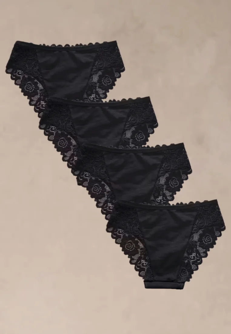 Zestaw 4 szt. figi majtki damskie bawełniane koronkowe czarne