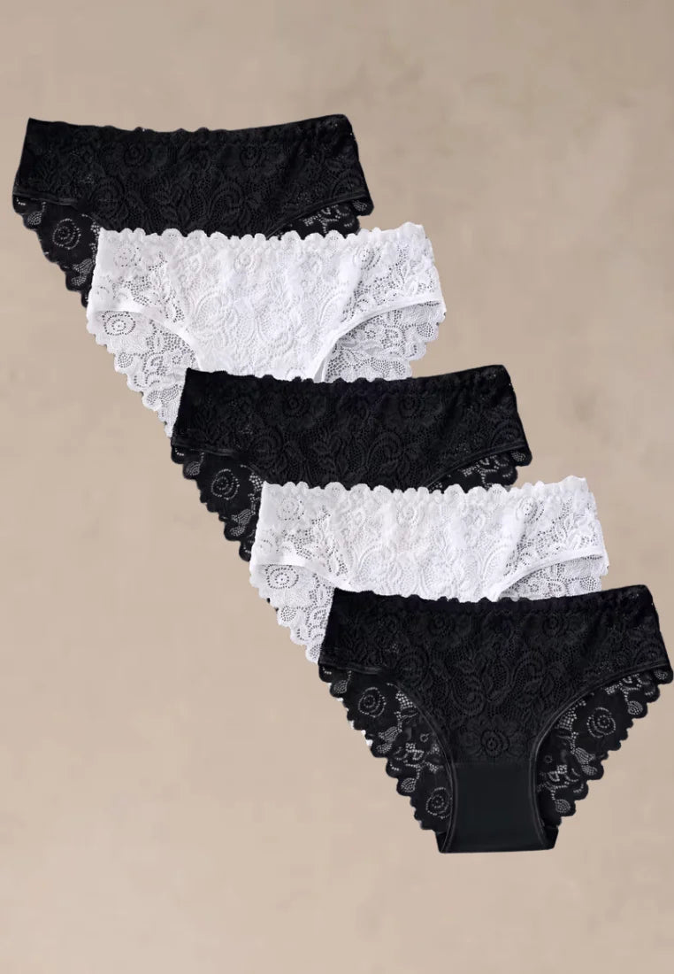 Zestaw 5 szt. figi majtki damskie bawełniane koronkowe w czerni i bieli