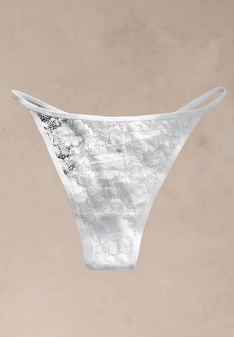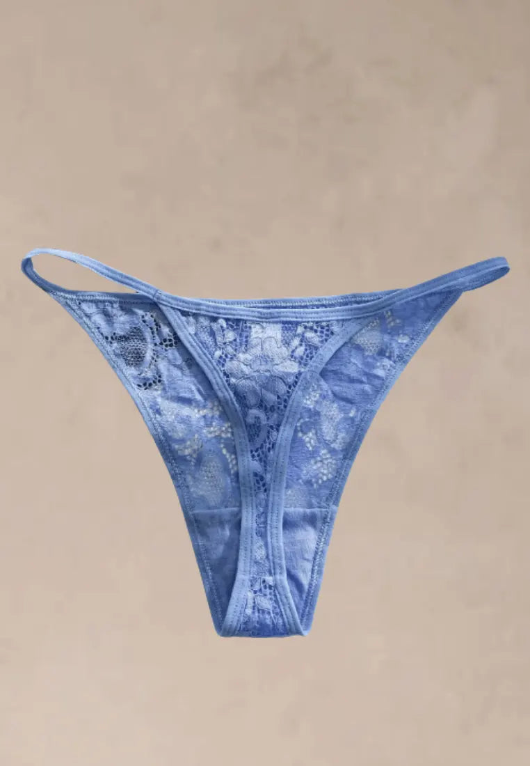 Zmysłowy i niezwykle kobiecy zestaw pięciu par stringów damskich wykonanych z miękkiej, oddychającej bawełny z dodatkiem delikatnej, ażurowej koronki. Transparentny materiał pięknie podkreśla sylwetkę, a cienkie paseczki po bokach nadają bieliźnie lekkości i wyjątkowo seksownego charakteru.