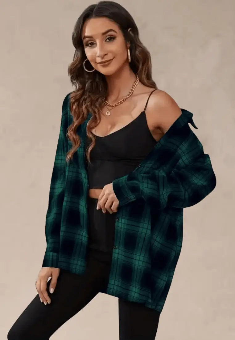 Postaw na wygodę i ponadczasowy styl z zieloną koszulą damską w kratę. Model oversize z długim rękawem i klasycznym kołnierzykiem doskonale wpisuje się w codzienne, miejskie stylizacje. Miękki, przyjemny w dotyku materiał gwarantuje komfort noszenia, a swobodny krój pozwala na pełną swobodę ruchów. Zapięcie na guziki oraz klasyczna kratka nadają całości uniwersalnego charakteru, który sprawdzi się w wielu zestawieniach.